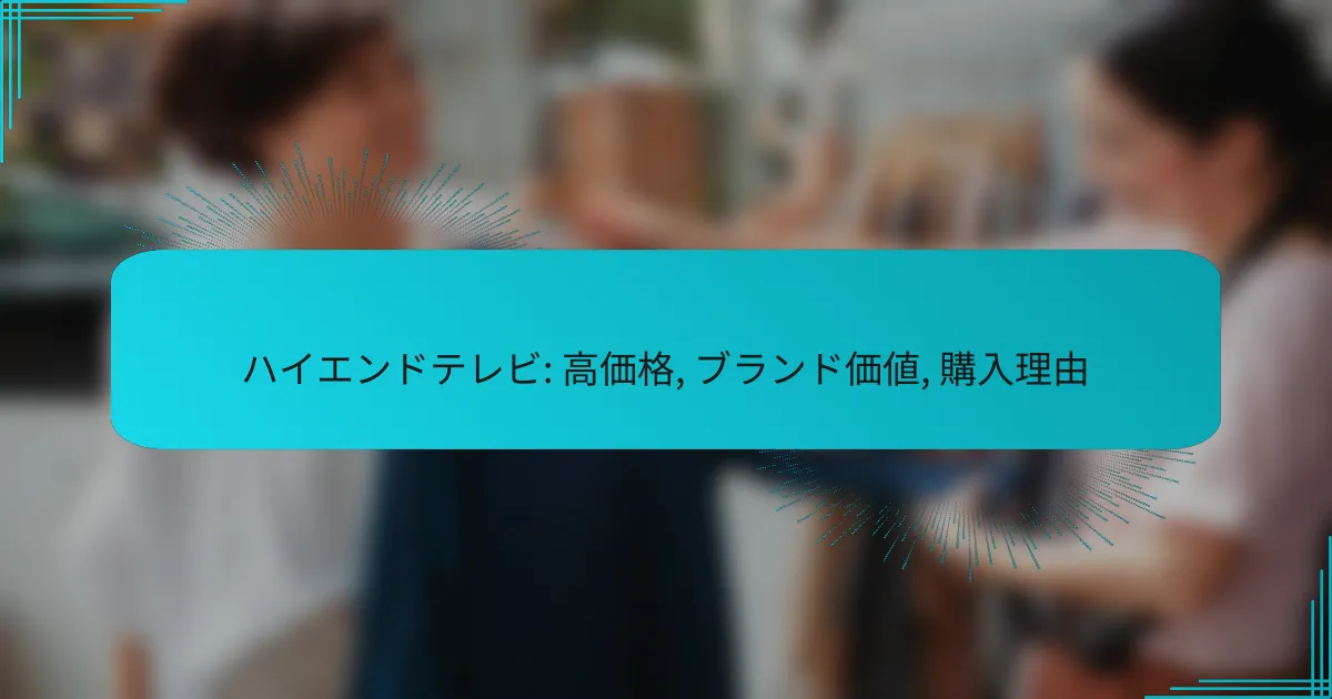 ハイエンドテレビのブランド比較は、性能、デザイン、価格、アフターサービスを考慮することが重要です。各ブランドの特徴を理解し、自分のニーズに合った選択をすることで、満足度の高い購入が可能になります。